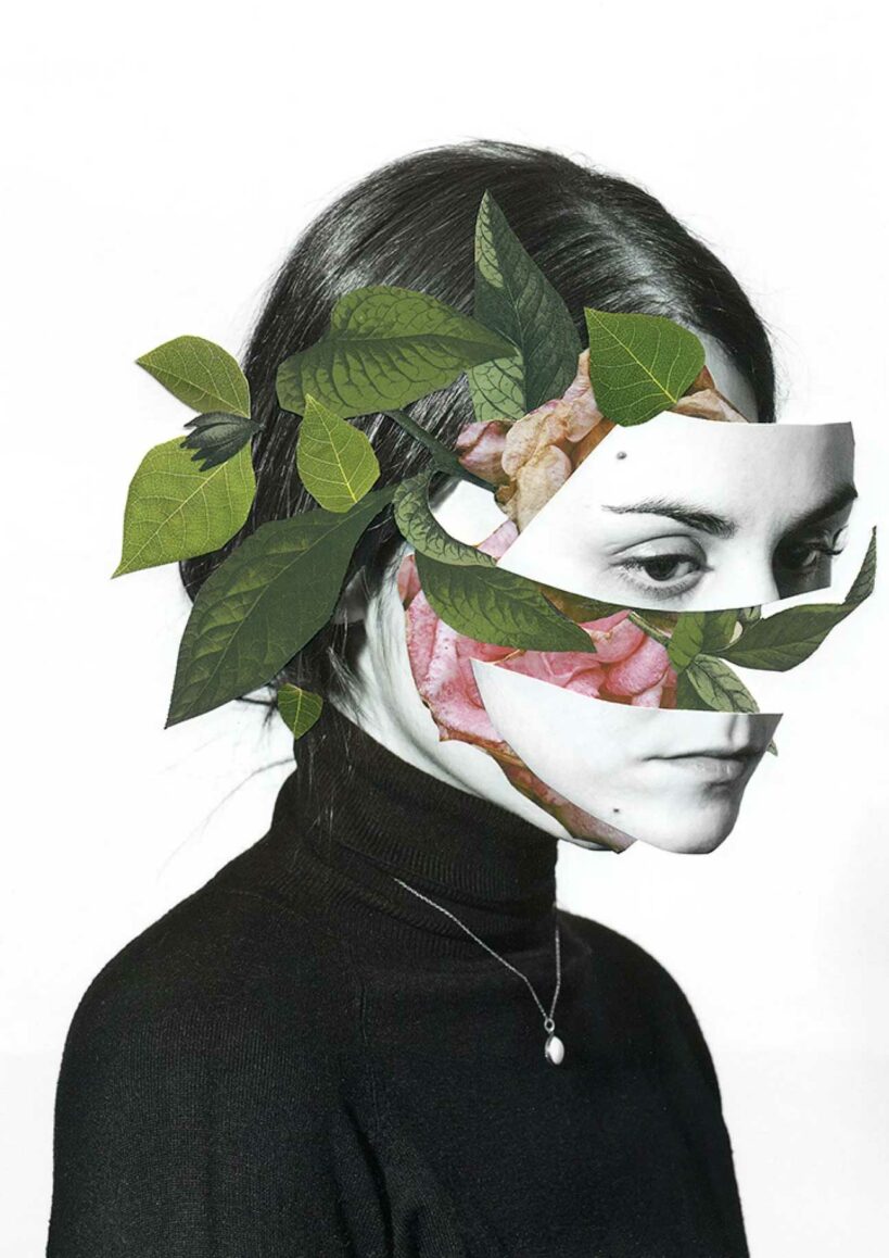 Spanish-based photographer, graphic/web designer and editor Rocio Montoya creates surreal collages that speak about the human body in close relation to nature. The female figure and a loss of identity are here conceptual basis. The resulting works are a mixture of graphic elements collected from magazines and vintage botanical illustrations with photographic portraits and old family postcards.