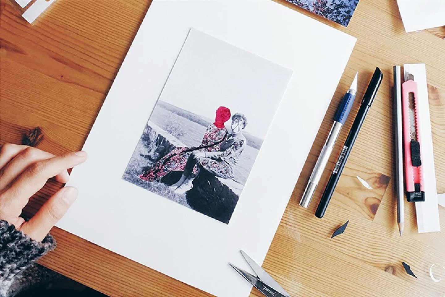 Her first contact was with photography, a discipline in which she received a higher degree and with which she began the art of collage. Her admiration for for painting and surrealism is evident when approaching her creations, in which one can observe a clear tendency to recreate atmospheres and situations distant from pure documentary photography, characterized by a delicate, disturbing and poetic graphic style.