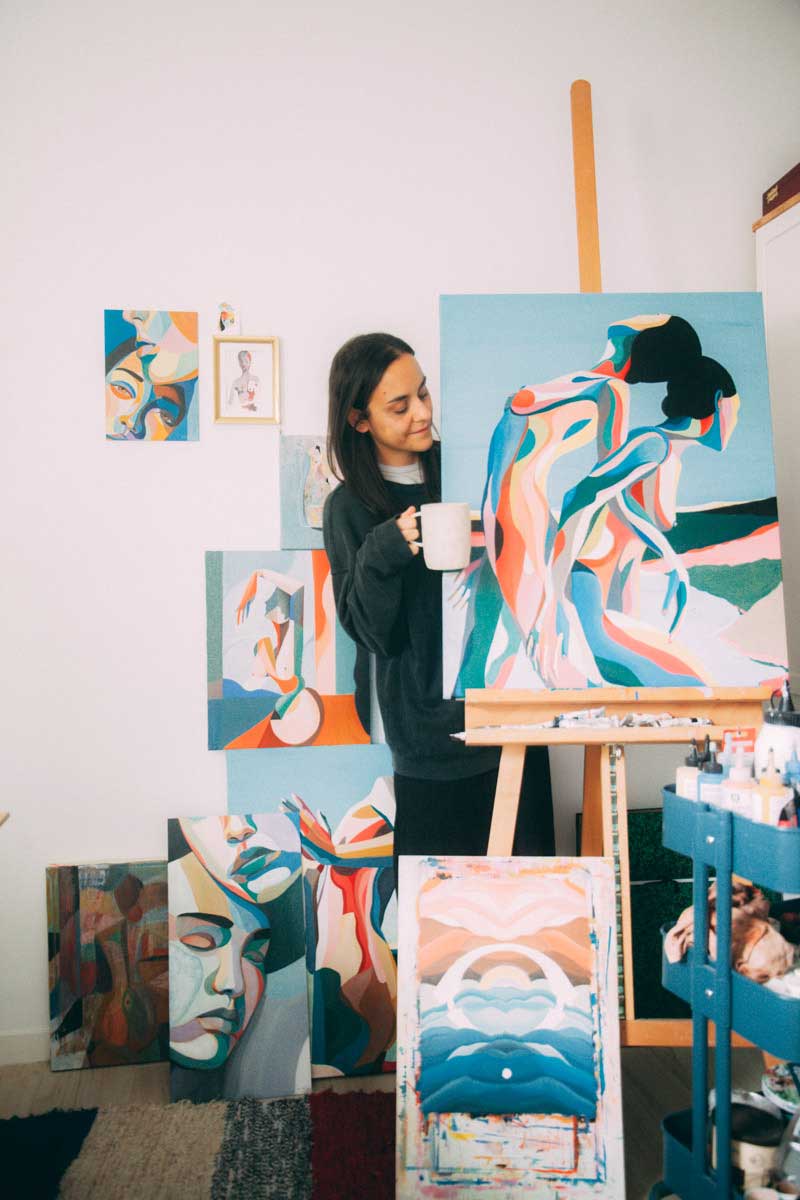 In 2018, her love for illustration and painting blossomed, seeking new horizons and plastic challenges beyond the borders of photography and collage. Using techniques such as watercolor, gouache and oil, she approaches new creations with a powerful chromatic charge and with women and nature as protagonists.