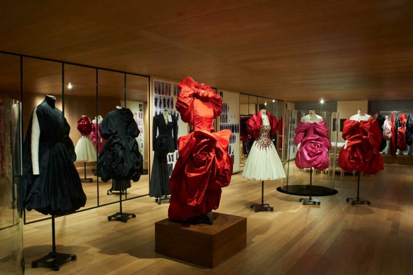 In the sprawling English garden of Alexander McQueen, no flower carries as much weight as the rose. Beautiful but thorny, the quintessentially British blossom has been one of the brand’s most persistent motifs, dating back to some of Lee McQueen’s earliest collections in the ’90s and carrying into Sarah Burton’s work of the 2010s. Over these three decades the rose has been interpreted by both designers in a variety of ways: perforated through leather as McQueen accomplished in 1997, pleated and tucked into a blooming frock as Burton did in 2019, or stitched through burlaps and muslins, an idea that both explored over the years. All these blooms are celebrated in a new installation titled simply “Roses” at the brand’s London store at 27 Old Bond Street.