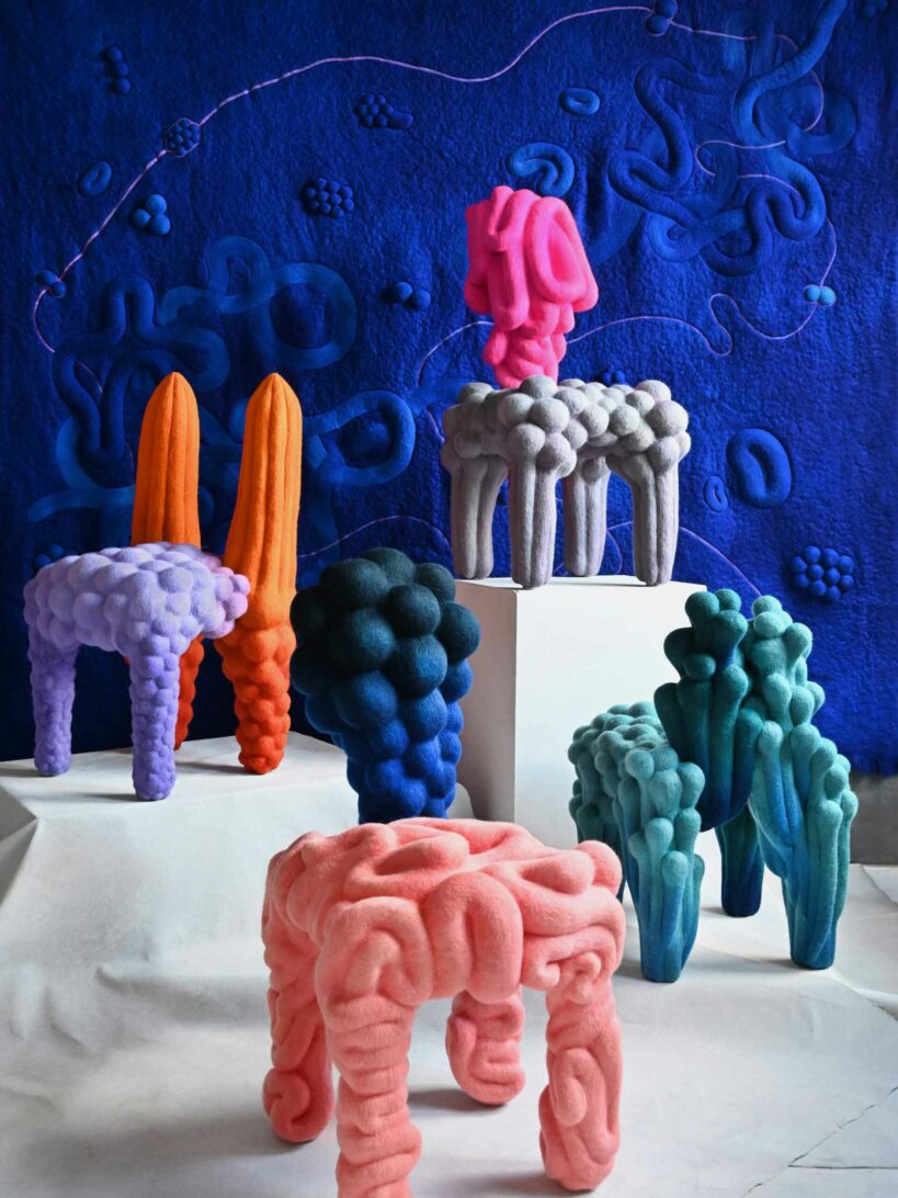 Contemporary collectible design is easily recognizable by its distinctive processes, materials, and otherworldly quality that differentiates from high street furniture. I first came across Liam Lee’s felted chairs at Salon Art & Design fair in New York City, presented by Patrick Parrish Gallery in 2021. I was taken by the landscape of the surface of this chairs – a process that is clearly meticulous and incredibly unique.