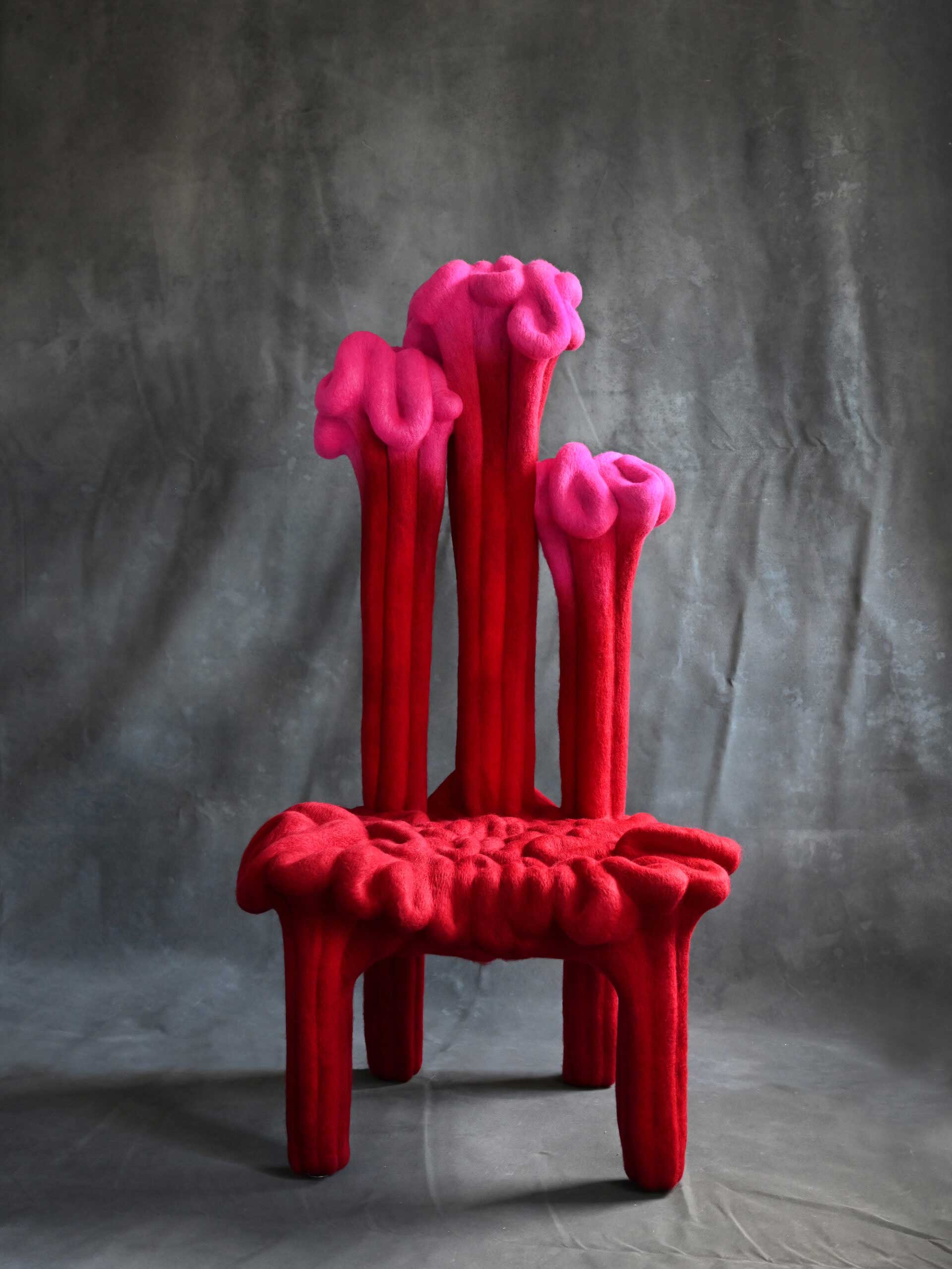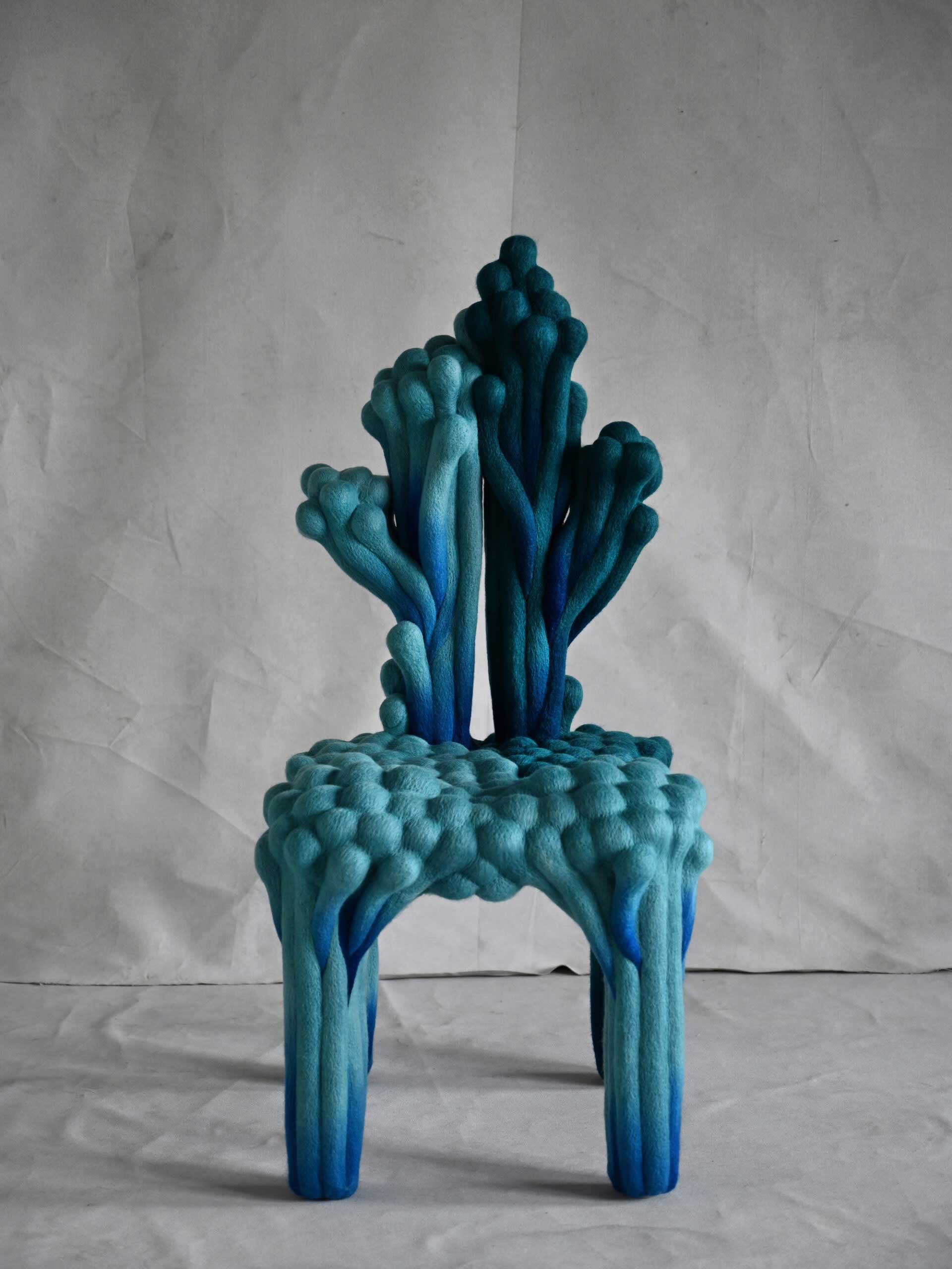 Contemporary collectible design is easily recognizable by its distinctive processes, materials, and otherworldly quality that differentiates from high street furniture. I first came across Liam Lee’s felted chairs at Salon Art & Design fair in New York City, presented by Patrick Parrish Gallery in 2021. I was taken by the landscape of the surface of this chairs – a process that is clearly meticulous and incredibly unique.
