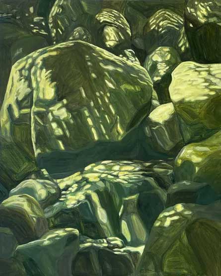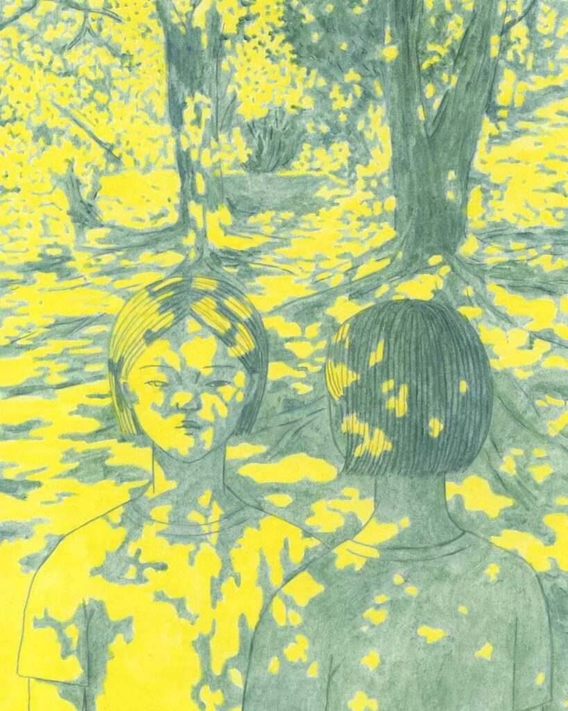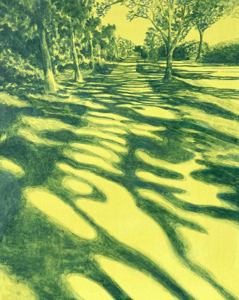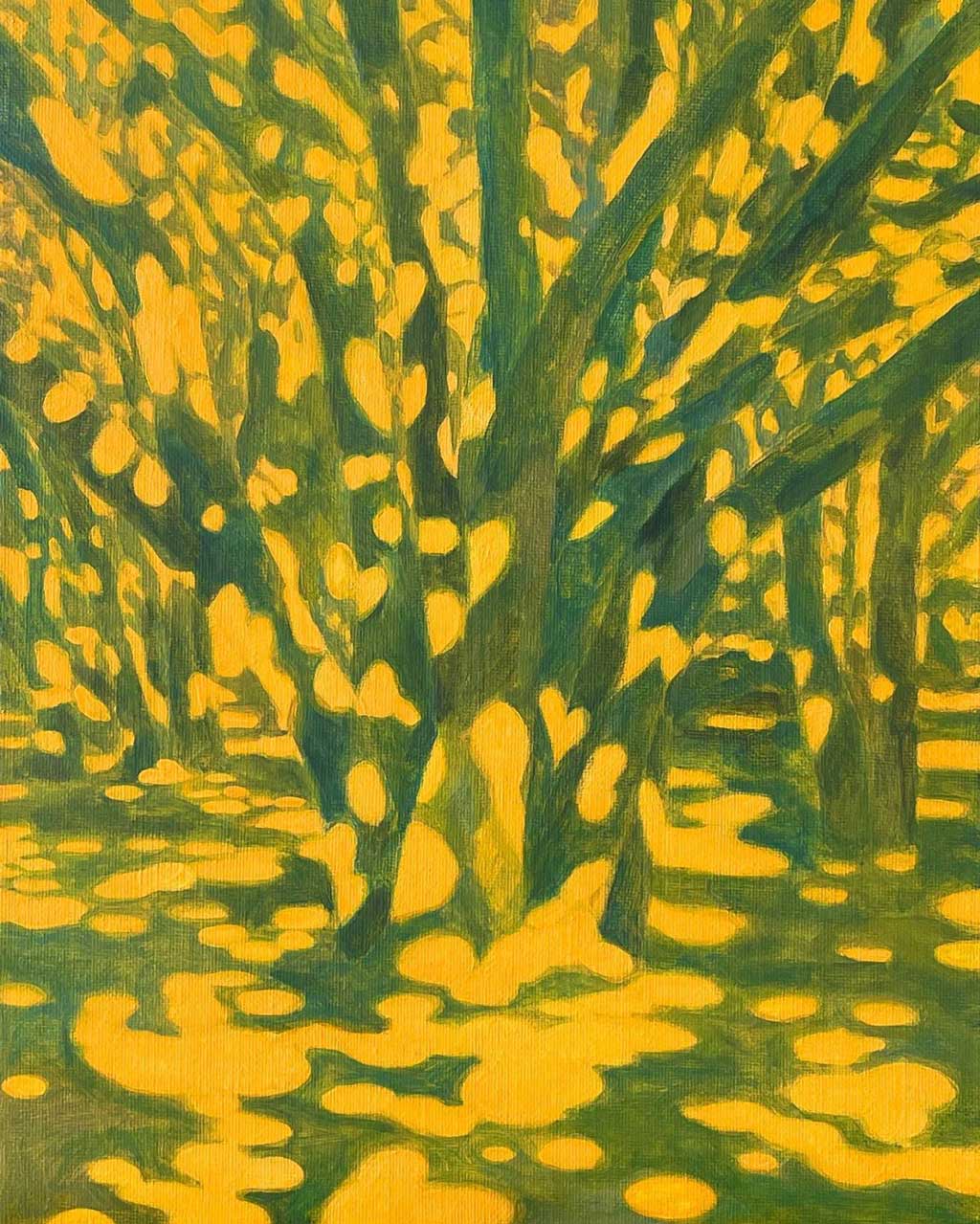 There’s something utterly transfixing about Duri Baek’s paintings. Despite only using a simple dual palette of green and yellow, Duri perfectly recreates the striking moment when sunlight travels through leaves and greenery. All of which is crafted through fine-tuned brush strokes and a clear attention to detail.