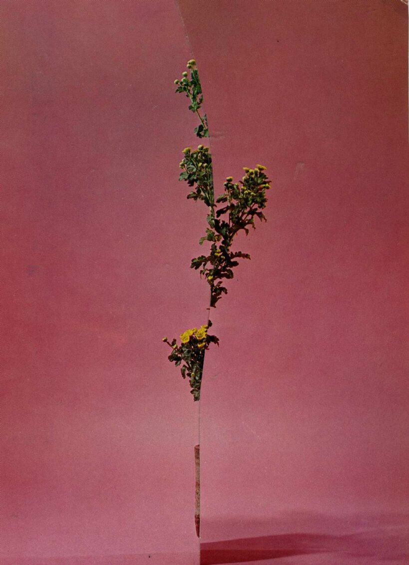 Kloosterman slices apart vintage photographs of ikebana arrangements, removes their center and grants them a different kind of balance through her elegant reassemblage. Traditionally the practice of such flower arrangement in Japan was tied to religion; a soulful activity for the maker that was then placed on outdoor altars as offering and decoration for the gods.