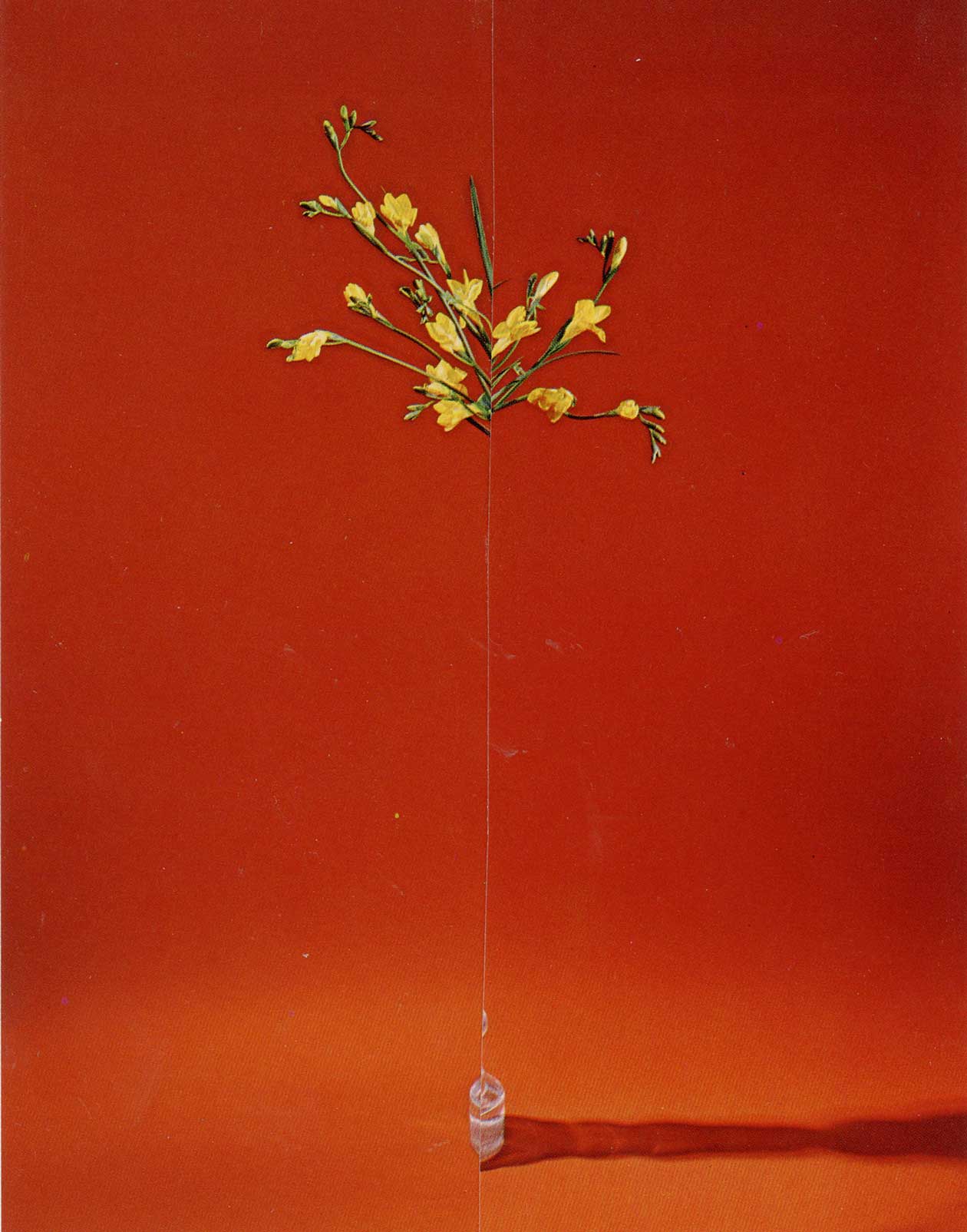 Kloosterman slices apart vintage photographs of ikebana arrangements, removes their center and grants them a different kind of balance through her elegant reassemblage. Traditionally the practice of such flower arrangement in Japan was tied to religion; a soulful activity for the maker that was then placed on outdoor altars as offering and decoration for the gods.